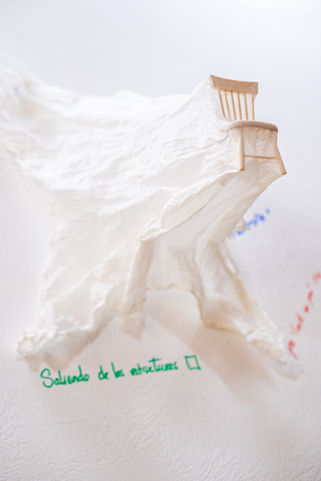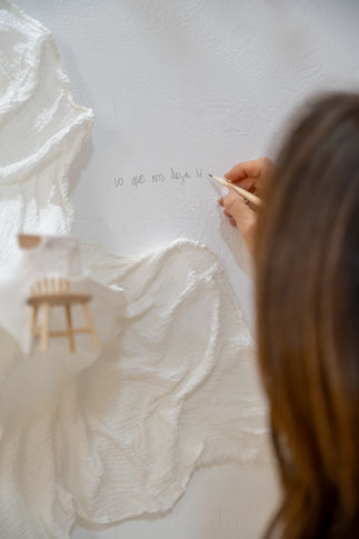 What Holds Us explores the tension between what sustains us and what holds us back. These works —11 small pieces and 4 large-scale silhouettes of rocking chairs— reveal moments where fragility becomes strength, and vulnerability becomes resistance.